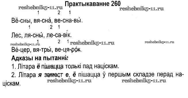 Готовая домашняя работа с ответами по Белорусскому языку за 5 класс Красней, Несцяровіч, Васюковіч, Лаурель Учебник Часть 1, 2 Национальный институт образования 2014 ФГОС - Часть 1. Практыкаванні 260