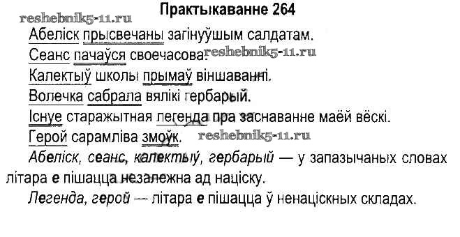 Готовая домашняя работа с ответами по Белорусскому языку за 5 класс Красней, Несцяровіч, Васюковіч, Лаурель Учебник Часть 1, 2 Национальный институт образования 2014 ФГОС - Часть 1. Практыкаванні 264