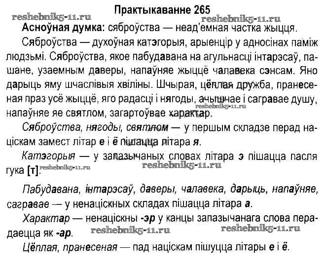 Готовая домашняя работа с ответами по Белорусскому языку за 5 класс Красней, Несцяровіч, Васюковіч, Лаурель Учебник Часть 1, 2 Национальный институт образования 2014 ФГОС - Часть 1. Практыкаванні 265