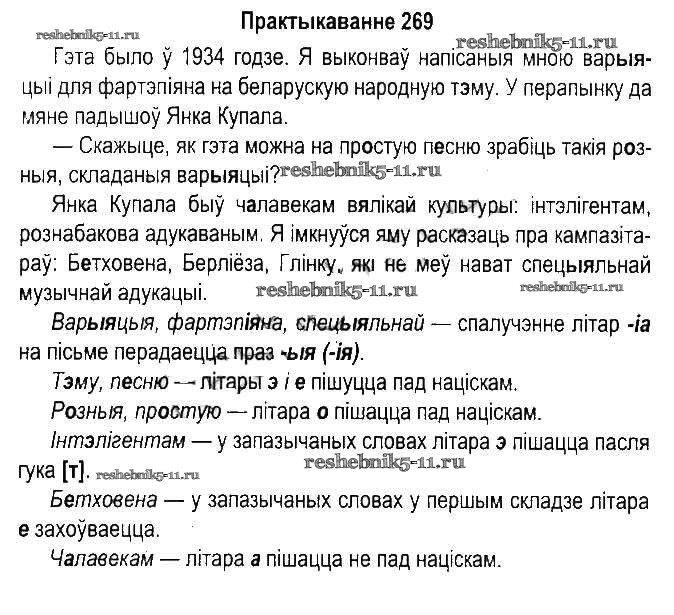 Готовая домашняя работа с ответами по Белорусскому языку за 5 класс Красней, Несцяровіч, Васюковіч, Лаурель Учебник Часть 1, 2 Национальный институт образования 2014 ФГОС - Часть 1. Практыкаванні 269