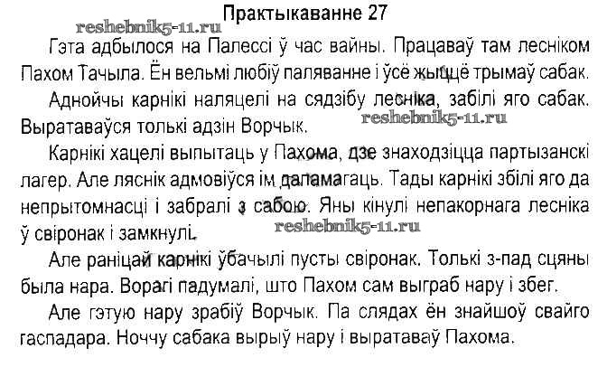 Готовая домашняя работа с ответами по Белорусскому языку за 5 класс Красней, Несцяровіч, Васюковіч, Лаурель Учебник Часть 1, 2 Национальный институт образования 2014 ФГОС - Часть 1. Практыкаванні 27