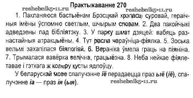 Готовая домашняя работа с ответами по Белорусскому языку за 5 класс Красней, Несцяровіч, Васюковіч, Лаурель Учебник Часть 1, 2 Национальный институт образования 2014 ФГОС - Часть 1. Практыкаванні 270