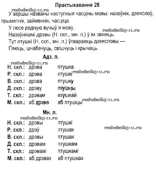 Белорусский язык за 5 класс Красней Учебник Национальный институт образования часть 1. практыкаванне 28