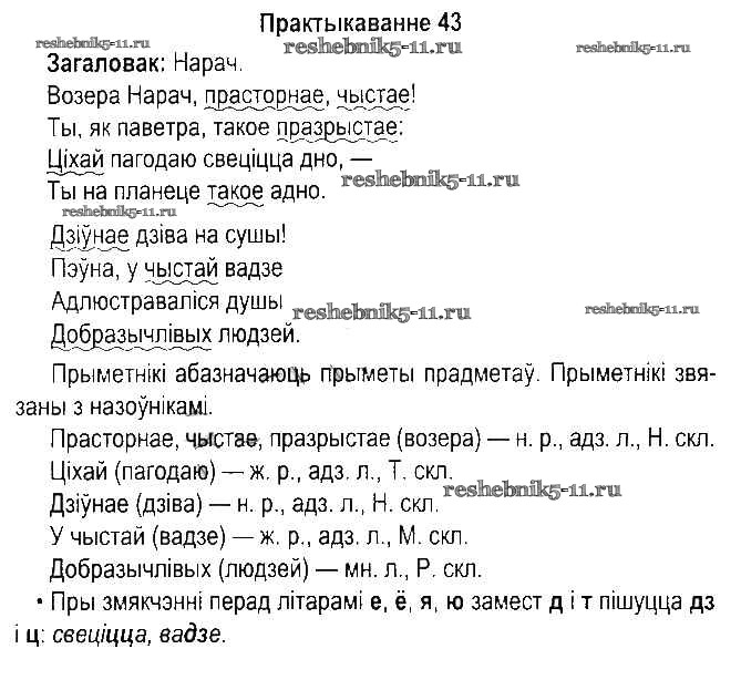 Готовая домашняя работа с ответами по Белорусскому языку за 5 класс Красней, Несцяровіч, Васюковіч, Лаурель Учебник Часть 1, 2 Национальный институт образования 2014 ФГОС - Часть 1. Практыкаванні 43