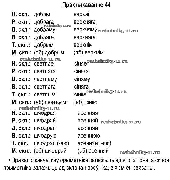 Готовая домашняя работа с ответами по Белорусскому языку за 5 класс Красней, Несцяровіч, Васюковіч, Лаурель Учебник Часть 1, 2 Национальный институт образования 2014 ФГОС - Часть 1. Практыкаванні 44