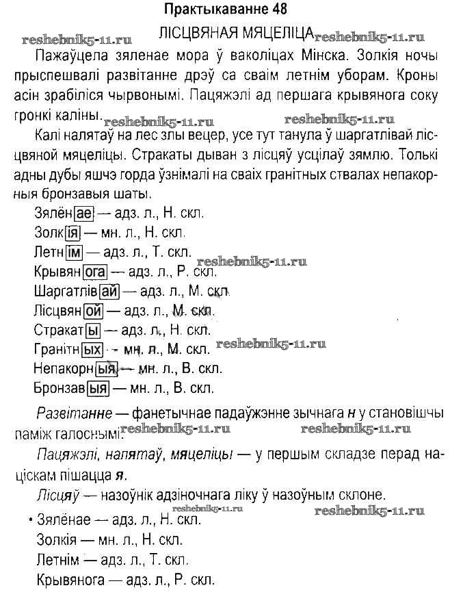 Готовая домашняя работа с ответами по Белорусскому языку за 5 класс Красней, Несцяровіч, Васюковіч, Лаурель Учебник Часть 1, 2 Национальный институт образования 2014 ФГОС - Часть 1. Практыкаванні 48