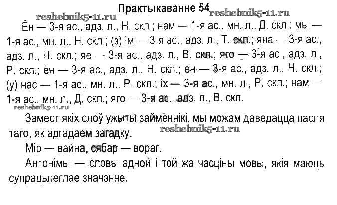 Готовая домашняя работа с ответами по Белорусскому языку за 5 класс Красней, Несцяровіч, Васюковіч, Лаурель Учебник Часть 1, 2 Национальный институт образования 2014 ФГОС - Часть 1. Практыкаванні 54