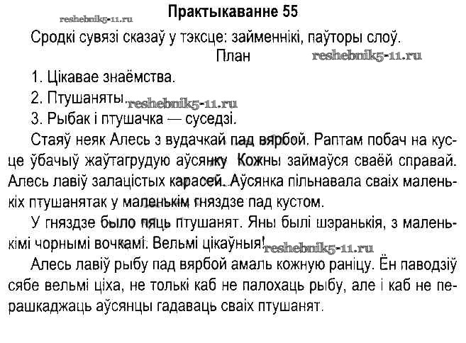 Готовая домашняя работа с ответами по Белорусскому языку за 5 класс Красней, Несцяровіч, Васюковіч, Лаурель Учебник Часть 1, 2 Национальный институт образования 2014 ФГОС - Часть 1. Практыкаванні 55