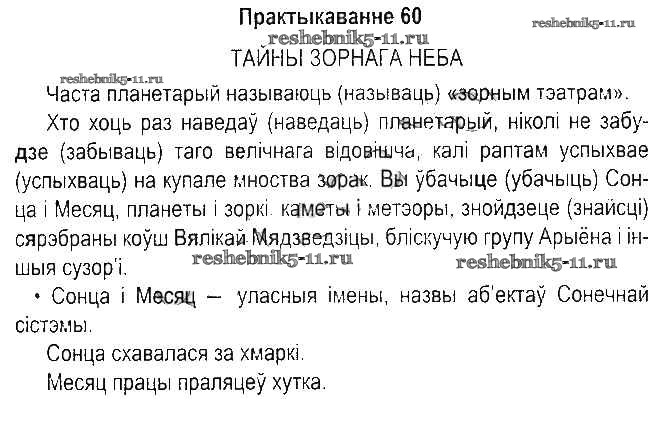 Готовая домашняя работа с ответами по Белорусскому языку за 5 класс Красней, Несцяровіч, Васюковіч, Лаурель Учебник Часть 1, 2 Национальный институт образования 2014 ФГОС - Часть 1. Практыкаванні 60