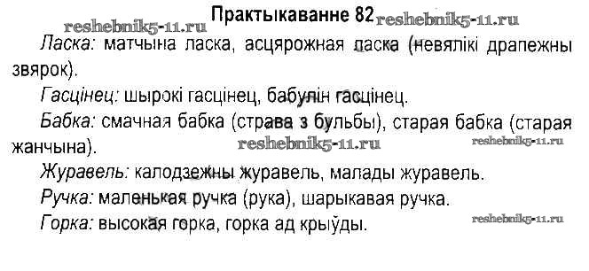Готовая домашняя работа с ответами по Белорусскому языку за 5 класс Красней, Несцяровіч, Васюковіч, Лаурель Учебник Часть 1, 2 Национальный институт образования 2014 ФГОС - Часть 1. Практыкаванні 82