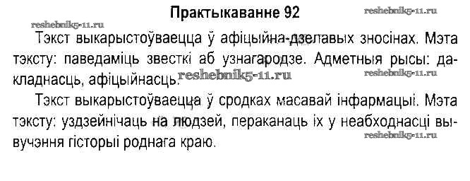Готовая домашняя работа с ответами по Белорусскому языку за 5 класс Красней, Несцяровіч, Васюковіч, Лаурель Учебник Часть 1, 2 Национальный институт образования 2014 ФГОС - Часть 1. Практыкаванні 92