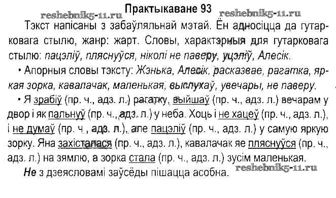 Готовая домашняя работа с ответами по Белорусскому языку за 5 класс Красней, Несцяровіч, Васюковіч, Лаурель Учебник Часть 1, 2 Национальный институт образования 2014 ФГОС - Часть 1. Практыкаванні 93