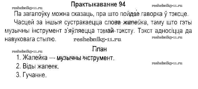Готовая домашняя работа с ответами по Белорусскому языку за 5 класс Красней, Несцяровіч, Васюковіч, Лаурель Учебник Часть 1, 2 Национальный институт образования 2014 ФГОС - Часть 1. Практыкаванні 94