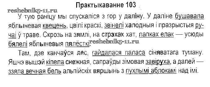 Готовая домашняя работа с ответами по Белорусскому языку за 5 класс Красней, Несцяровіч, Васюковіч, Лаурель Учебник Часть 1, 2 Национальный институт образования 2014 ФГОС - Часть 2. Практыкаванні 103