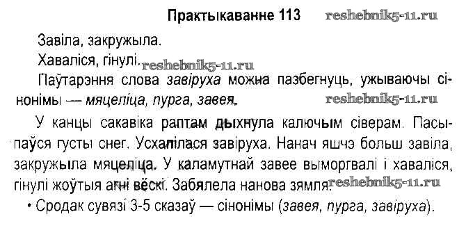 Готовая домашняя работа с ответами по Белорусскому языку за 5 класс Красней, Несцяровіч, Васюковіч, Лаурель Учебник Часть 1, 2 Национальный институт образования 2014 ФГОС - Часть 2. Практыкаванні 113