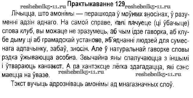 Готовая домашняя работа с ответами по Белорусскому языку за 5 класс Красней, Несцяровіч, Васюковіч, Лаурель Учебник Часть 1, 2 Национальный институт образования 2014 ФГОС - Часть 2. Практыкаванні 129