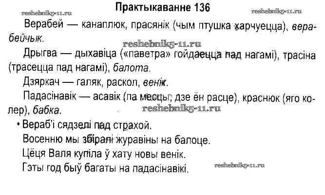 Готовая домашняя работа с ответами по Белорусскому языку за 5 класс Красней, Несцяровіч, Васюковіч, Лаурель Учебник Часть 1, 2 Национальный институт образования 2014 ФГОС - Часть 2. Практыкаванні 136