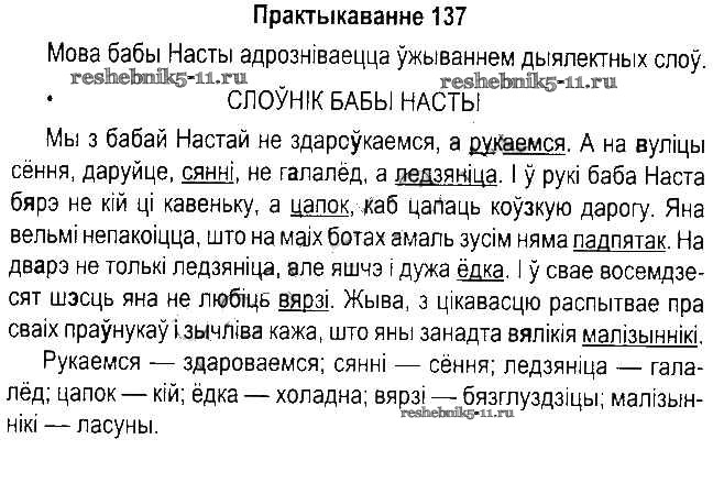 Готовая домашняя работа с ответами по Белорусскому языку за 5 класс Красней, Несцяровіч, Васюковіч, Лаурель Учебник Часть 1, 2 Национальный институт образования 2014 ФГОС - Часть 2. Практыкаванні 137