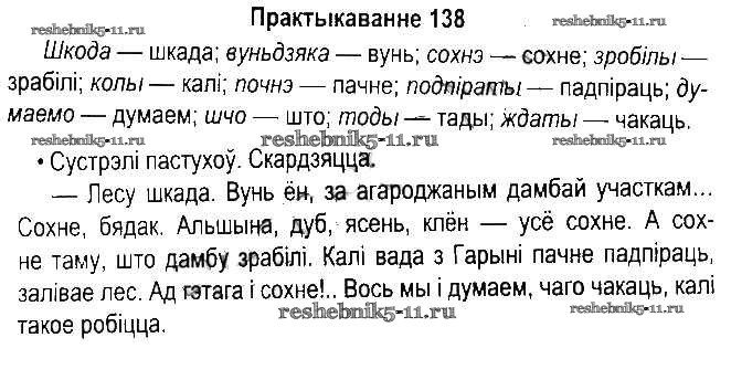 Готовая домашняя работа с ответами по Белорусскому языку за 5 класс Красней, Несцяровіч, Васюковіч, Лаурель Учебник Часть 1, 2 Национальный институт образования 2014 ФГОС - Часть 2. Практыкаванні 138