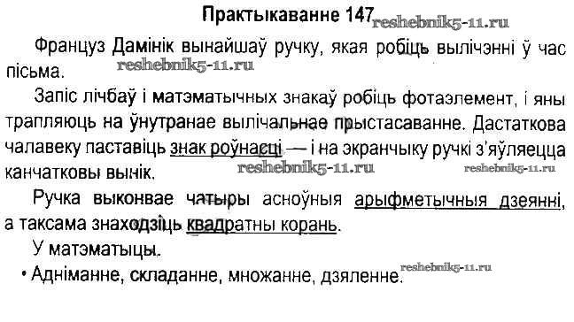 Готовая домашняя работа с ответами по Белорусскому языку за 5 класс Красней, Несцяровіч, Васюковіч, Лаурель Учебник Часть 1, 2 Национальный институт образования 2014 ФГОС - Часть 2. Практыкаванні 147