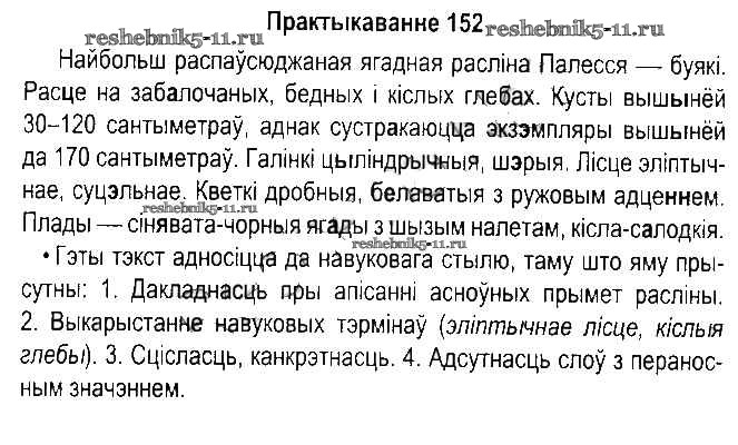 Готовая домашняя работа с ответами по Белорусскому языку за 5 класс Красней, Несцяровіч, Васюковіч, Лаурель Учебник Часть 1, 2 Национальный институт образования 2014 ФГОС - Часть 2. Практыкаванні 152