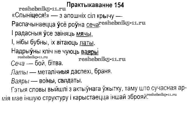 Готовая домашняя работа с ответами по Белорусскому языку за 5 класс Красней, Несцяровіч, Васюковіч, Лаурель Учебник Часть 1, 2 Национальный институт образования 2014 ФГОС - Часть 2. Практыкаванні 154