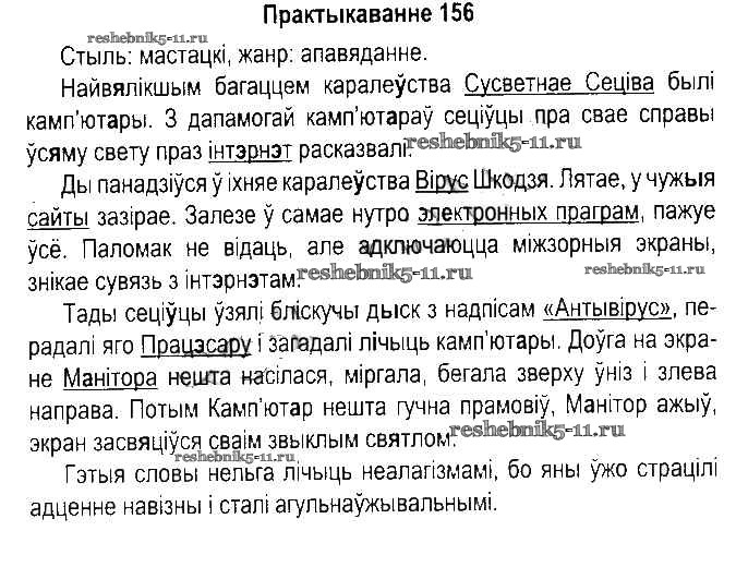 Готовая домашняя работа с ответами по Белорусскому языку за 5 класс Красней, Несцяровіч, Васюковіч, Лаурель Учебник Часть 1, 2 Национальный институт образования 2014 ФГОС - Часть 2. Практыкаванні 156