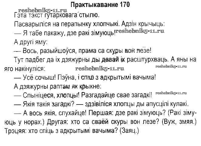 Готовая домашняя работа с ответами по Белорусскому языку за 5 класс Красней, Несцяровіч, Васюковіч, Лаурель Учебник Часть 1, 2 Национальный институт образования 2014 ФГОС - Часть 2. Практыкаванні 170