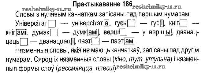 Готовая домашняя работа с ответами по Белорусскому языку за 5 класс Красней, Несцяровіч, Васюковіч, Лаурель Учебник Часть 1, 2 Национальный институт образования 2014 ФГОС - Часть 2. Практыкаванні 186
