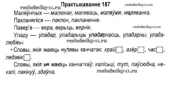 Готовая домашняя работа с ответами по Белорусскому языку за 5 класс Красней, Несцяровіч, Васюковіч, Лаурель Учебник Часть 1, 2 Национальный институт образования 2014 ФГОС - Часть 2. Практыкаванні 187