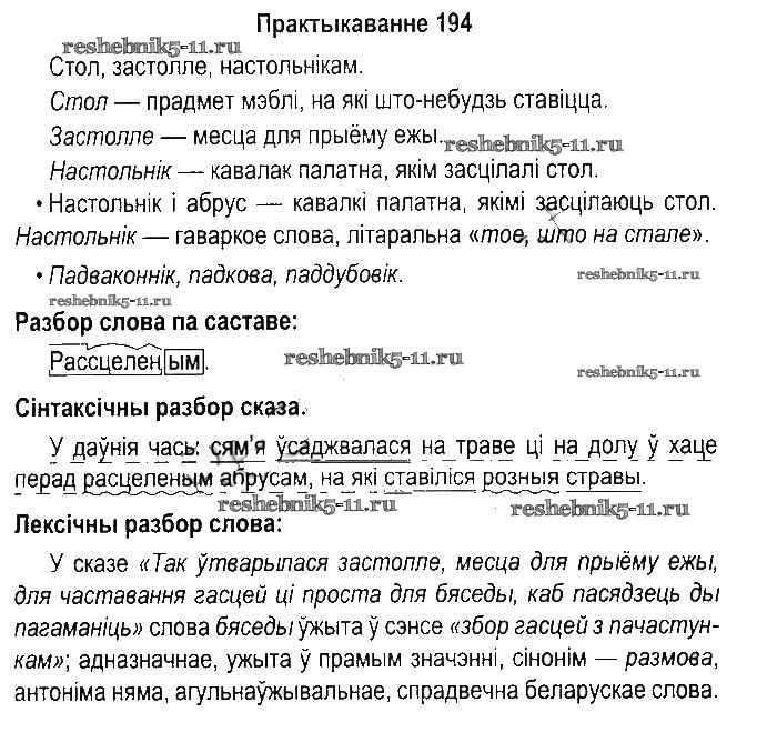 Готовая домашняя работа с ответами по Белорусскому языку за 5 класс Красней, Несцяровіч, Васюковіч, Лаурель Учебник Часть 1, 2 Национальный институт образования 2014 ФГОС - Часть 2. Практыкаванні 194