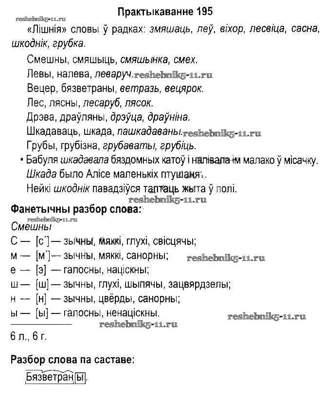 Готовая домашняя работа с ответами по Белорусскому языку за 5 класс Красней, Несцяровіч, Васюковіч, Лаурель Учебник Часть 1, 2 Национальный институт образования 2014 ФГОС - Часть 2. Практыкаванні 195