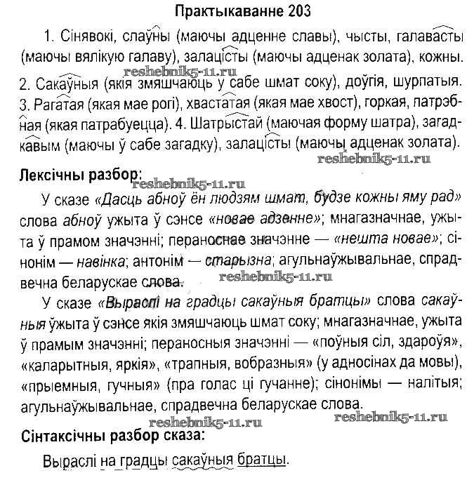 Готовая домашняя работа с ответами по Белорусскому языку за 5 класс Красней, Несцяровіч, Васюковіч, Лаурель Учебник Часть 1, 2 Национальный институт образования 2014 ФГОС - Часть 2. Практыкаванні 203