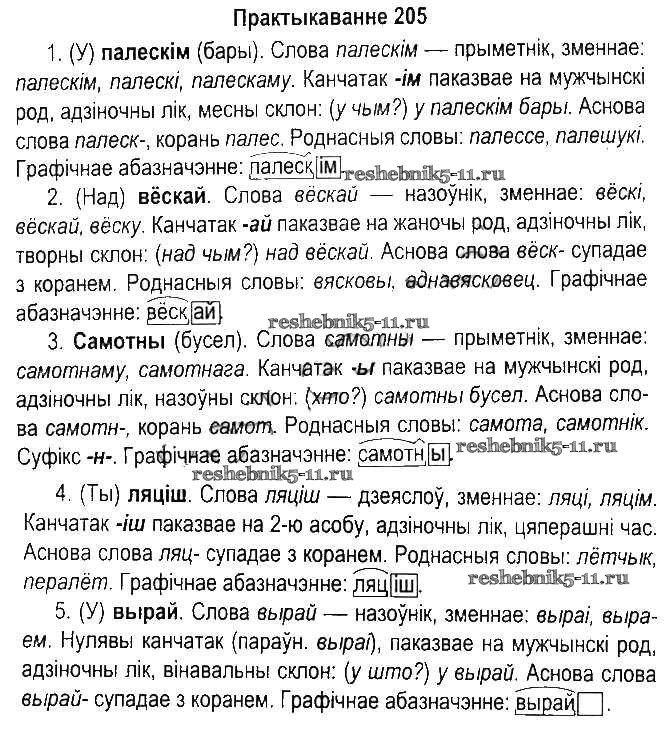Готовая домашняя работа с ответами по Белорусскому языку за 5 класс Красней, Несцяровіч, Васюковіч, Лаурель Учебник Часть 1, 2 Национальный институт образования 2014 ФГОС - Часть 2. Практыкаванні 205