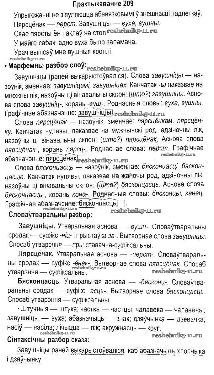 Готовая домашняя работа с ответами по Белорусскому языку за 5 класс Красней, Несцяровіч, Васюковіч, Лаурель Учебник Часть 1, 2 Национальный институт образования 2014 ФГОС - Часть 2. Практыкаванні 209