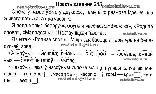 Готовая домашняя работа с ответами по Белорусскому языку за 5 класс Красней, Несцяровіч, Васюковіч, Лаурель Учебник Часть 1, 2 Национальный институт образования 2014 ФГОС - Часть 2. Практыкаванні 215