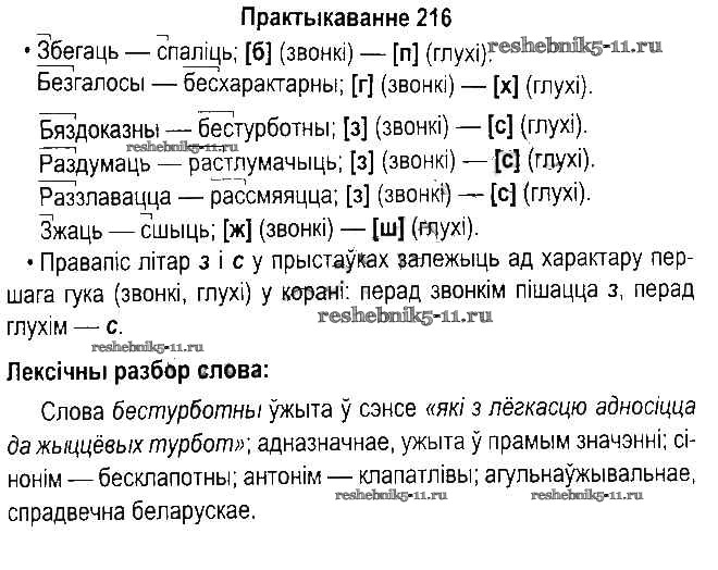 Готовая домашняя работа с ответами по Белорусскому языку за 5 класс Красней, Несцяровіч, Васюковіч, Лаурель Учебник Часть 1, 2 Национальный институт образования 2014 ФГОС - Часть 2. Практыкаванні 216