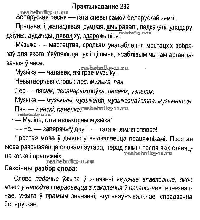 Готовая домашняя работа с ответами по Белорусскому языку за 5 класс Красней, Несцяровіч, Васюковіч, Лаурель Учебник Часть 1, 2 Национальный институт образования 2014 ФГОС - Часть 2. Практыкаванні 232