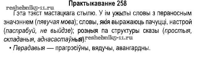 Готовая домашняя работа с ответами по Белорусскому языку за 5 класс Красней, Несцяровіч, Васюковіч, Лаурель Учебник Часть 1, 2 Национальный институт образования 2014 ФГОС - Часть 2. Практыкаванні 258