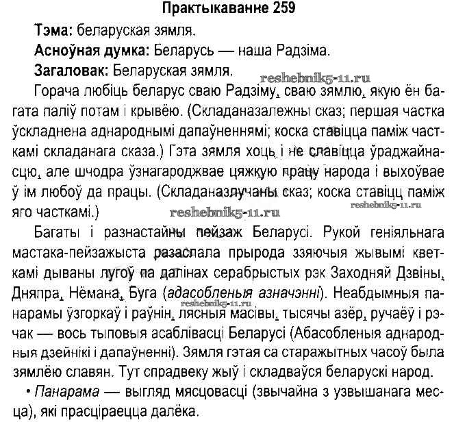 Готовая домашняя работа с ответами по Белорусскому языку за 5 класс Красней, Несцяровіч, Васюковіч, Лаурель Учебник Часть 1, 2 Национальный институт образования 2014 ФГОС - Часть 2. Практыкаванні 259