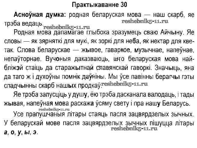 Готовая домашняя работа с ответами по Белорусскому языку за 5 класс Красней, Несцяровіч, Васюковіч, Лаурель Учебник Часть 1, 2 Национальный институт образования 2014 ФГОС - Часть 2. Практыкаванні 30