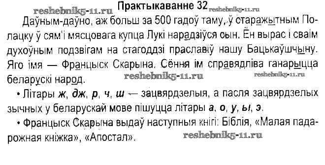 Готовая домашняя работа с ответами по Белорусскому языку за 5 класс Красней, Несцяровіч, Васюковіч, Лаурель Учебник Часть 1, 2 Национальный институт образования 2014 ФГОС - Часть 2. Практыкаванні 32