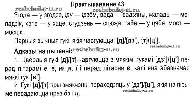 Готовая домашняя работа с ответами по Белорусскому языку за 5 класс Красней, Несцяровіч, Васюковіч, Лаурель Учебник Часть 1, 2 Национальный институт образования 2014 ФГОС - Часть 2. Практыкаванні 43