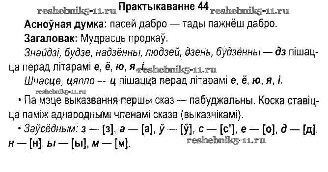 Готовая домашняя работа с ответами по Белорусскому языку за 5 класс Красней, Несцяровіч, Васюковіч, Лаурель Учебник Часть 1, 2 Национальный институт образования 2014 ФГОС - Часть 2. Практыкаванні 44