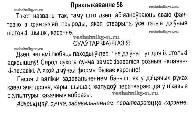 Готовая домашняя работа с ответами по Белорусскому языку за 5 класс Красней, Несцяровіч, Васюковіч, Лаурель Учебник Часть 1, 2 Национальный институт образования 2014 ФГОС - Часть 2. Практыкаванні 58