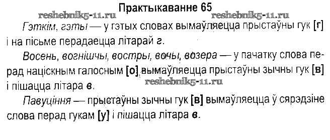 Готовая домашняя работа с ответами по Белорусскому языку за 5 класс Красней, Несцяровіч, Васюковіч, Лаурель Учебник Часть 1, 2 Национальный институт образования 2014 ФГОС - Часть 2. Практыкаванні 65
