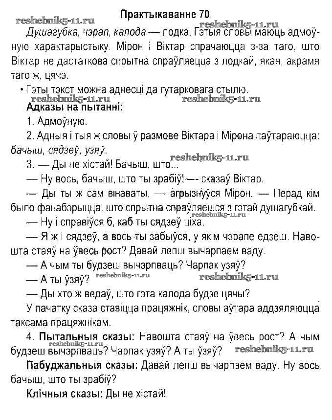 Готовая домашняя работа с ответами по Белорусскому языку за 5 класс Красней, Несцяровіч, Васюковіч, Лаурель Учебник Часть 1, 2 Национальный институт образования 2014 ФГОС - Часть 2. Практыкаванні 70