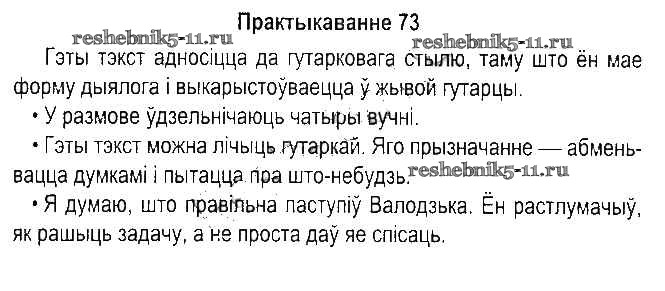 Готовая домашняя работа с ответами по Белорусскому языку за 5 класс Красней, Несцяровіч, Васюковіч, Лаурель Учебник Часть 1, 2 Национальный институт образования 2014 ФГОС - Часть 2. Практыкаванні 73