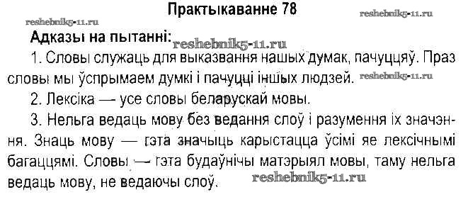 Готовая домашняя работа с ответами по Белорусскому языку за 5 класс Красней, Несцяровіч, Васюковіч, Лаурель Учебник Часть 1, 2 Национальный институт образования 2014 ФГОС - Часть 2. Практыкаванні 78