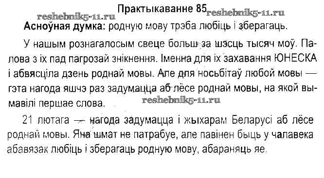 Готовая домашняя работа с ответами по Белорусскому языку за 5 класс Красней, Несцяровіч, Васюковіч, Лаурель Учебник Часть 1, 2 Национальный институт образования 2014 ФГОС - Часть 2. Практыкаванні 85